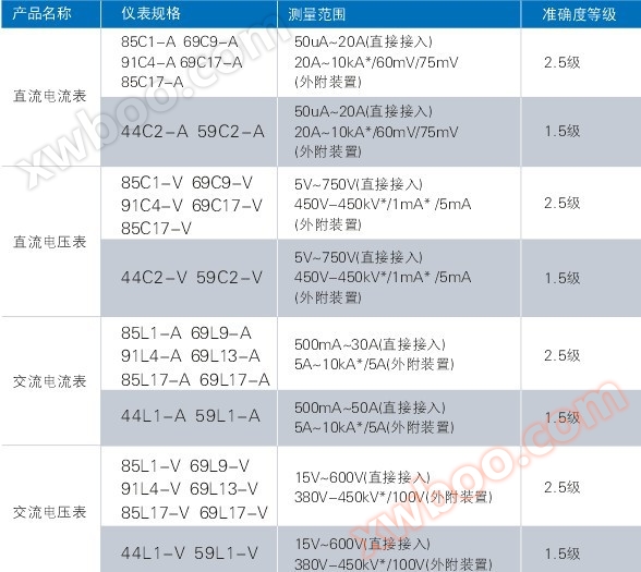 85 L 1、44 L 1、69 L 9、59 L 1、85 L 17、69 L 17、91 C 4、69 L 13シリーズの計器は測定回路、測定機構、指示装置で構成され、支持部分は宝石軸受と軸先で構成され、可動部分は磁気システム、動輪、指針で構成されている。本シリーズの計器は磁電内磁気式構造である。プラスチックケース、全透明有機ガラス、印刷ダイヤルを採用し、全体が美しく、視野が広い。